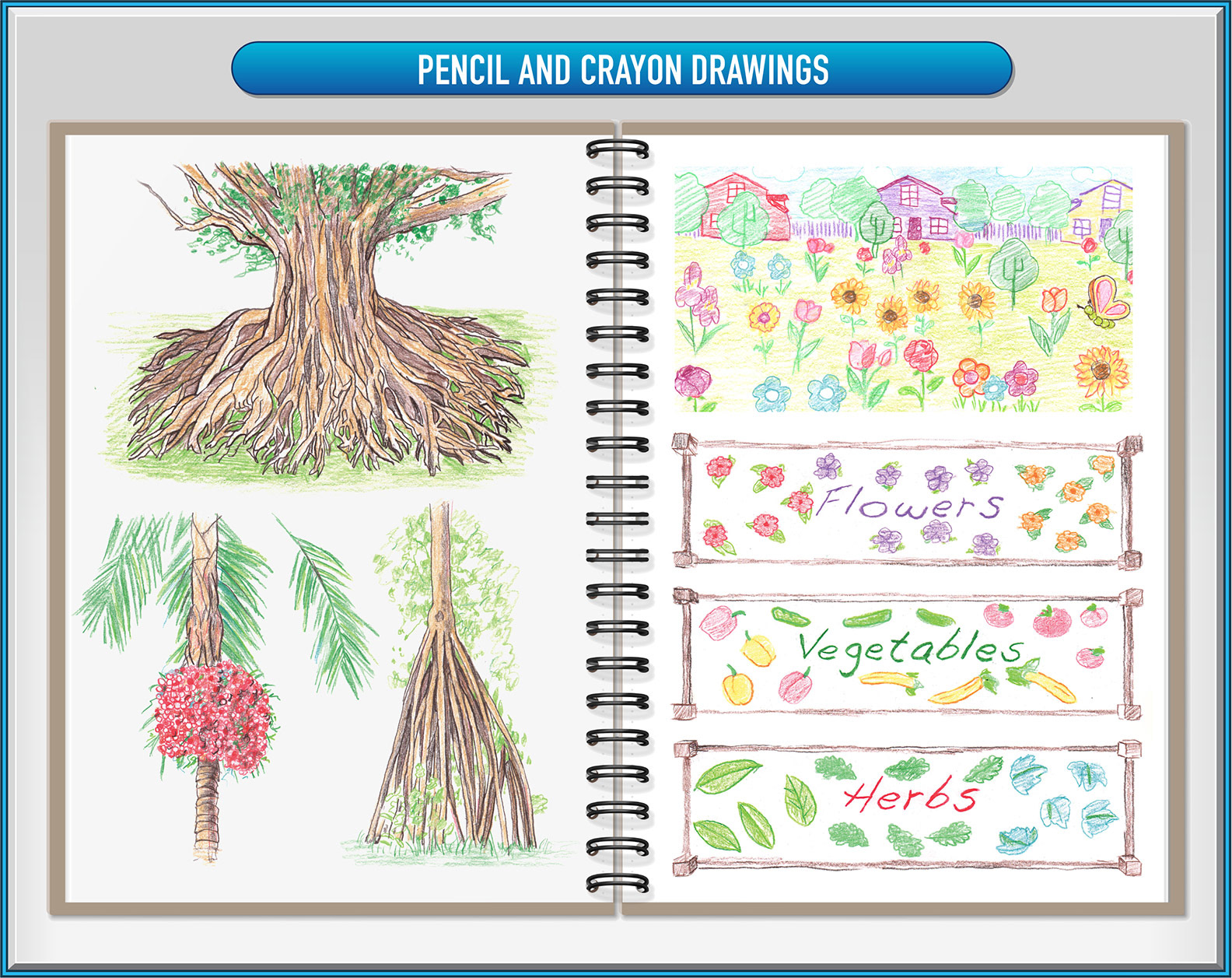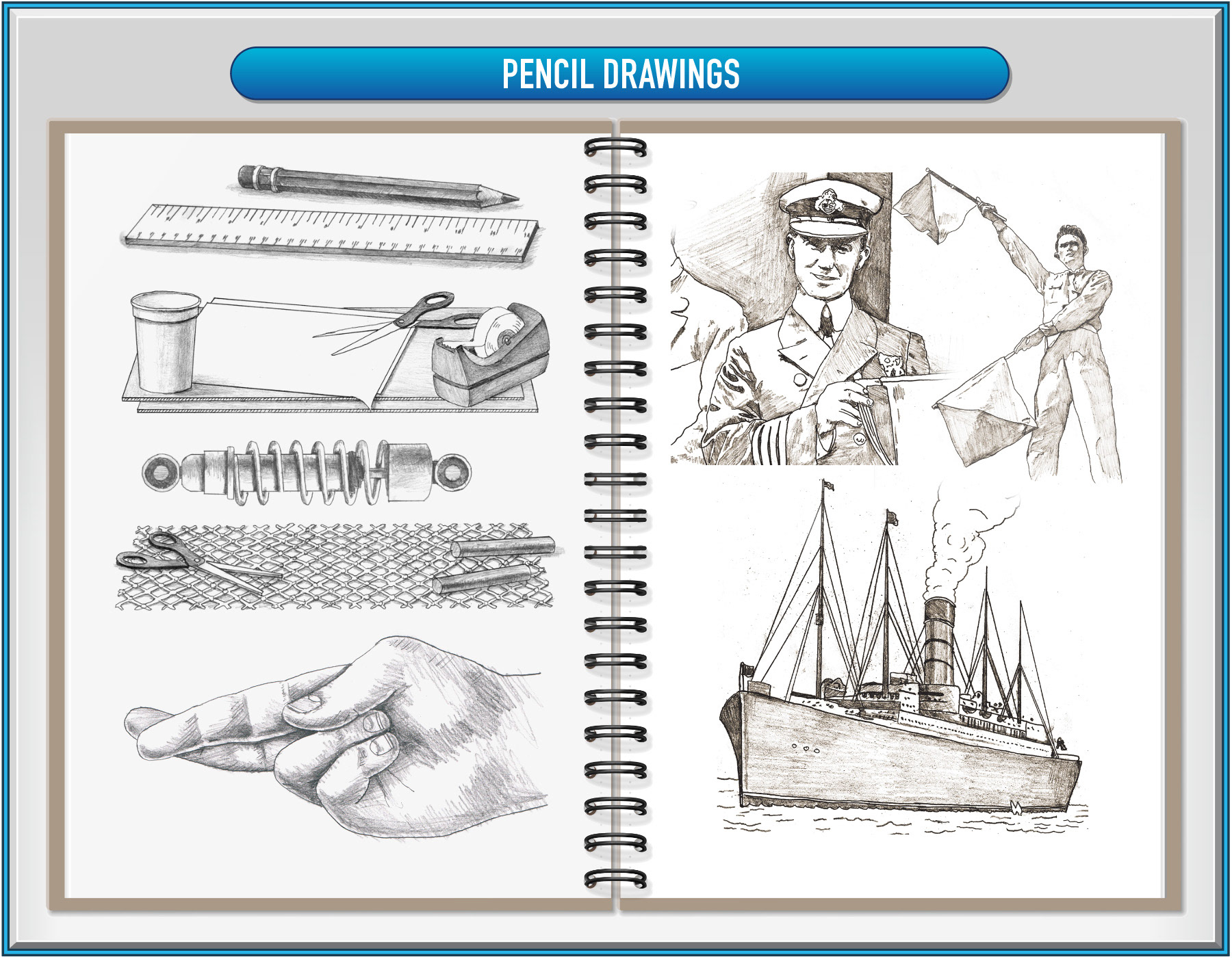 Editorial pencil drawings and educational "student-drawn" images which are meant to look as if drawn by kids.