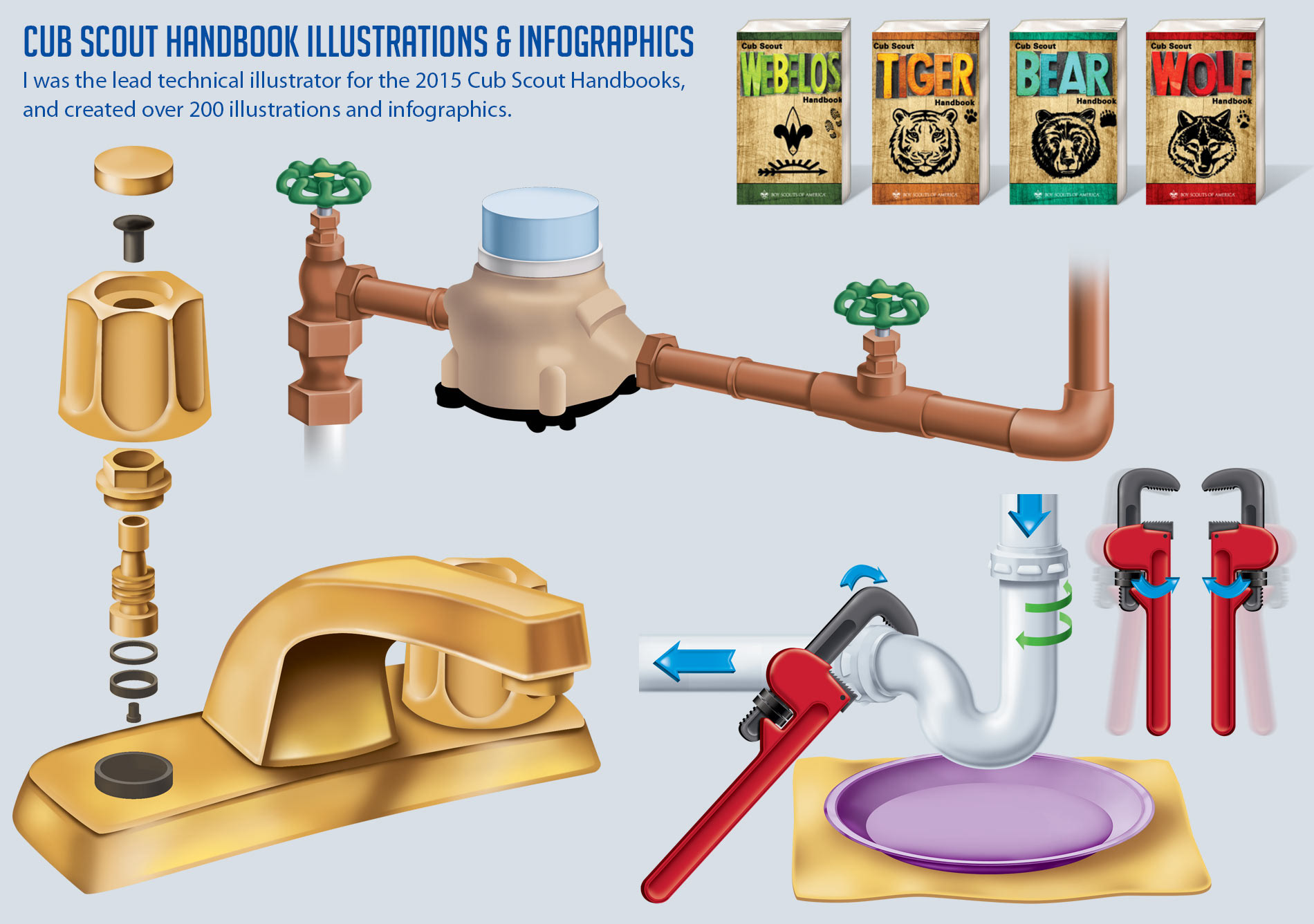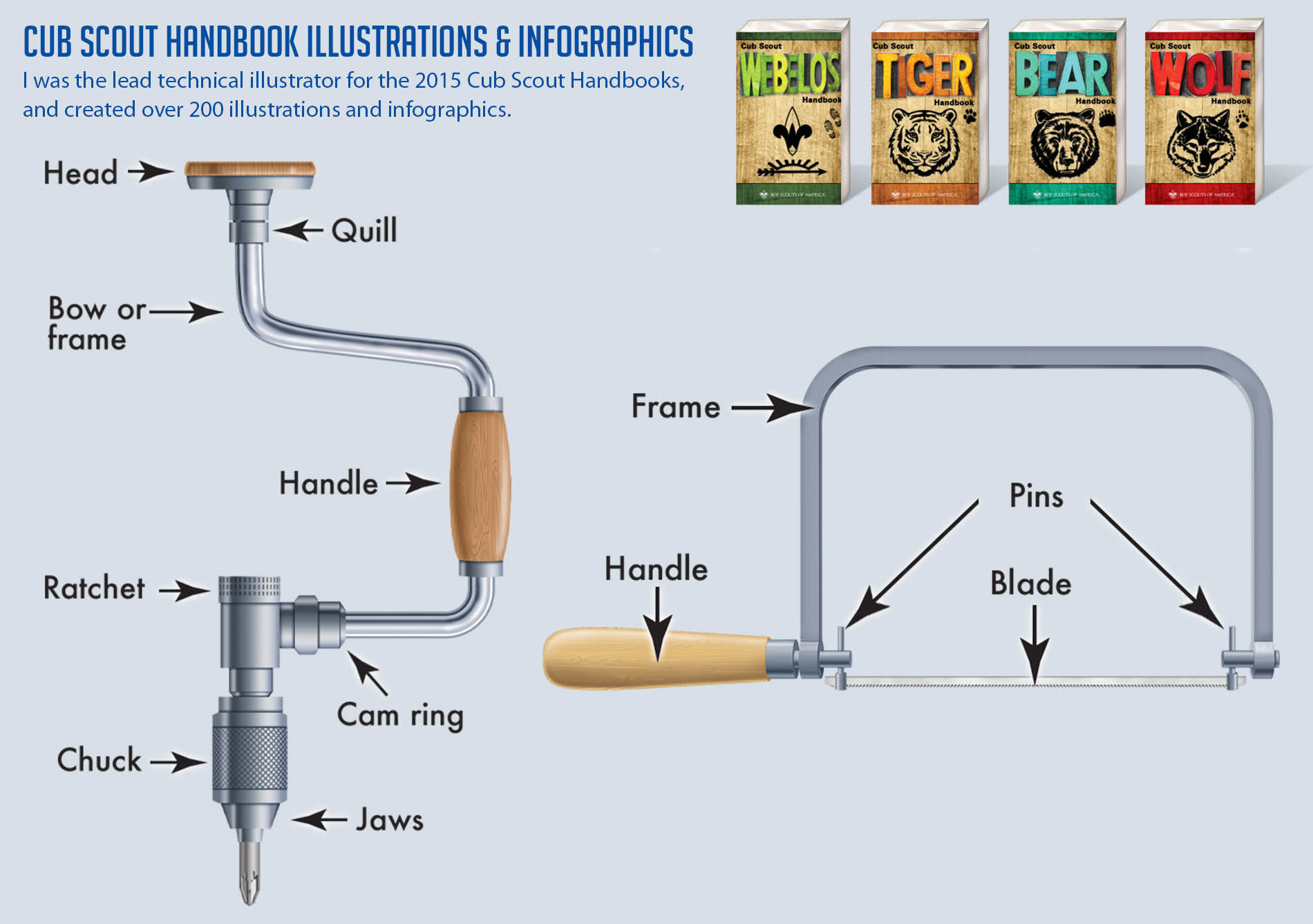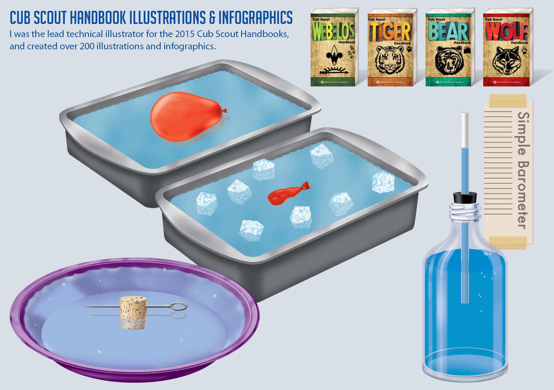 These are educational graphics and illustrations for grades K–6th including math, and science along with some of the many graphics we created for the Cub Scout Handbooks.